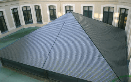 Si les pans verticaux son largement couverts par l’offre BSO relevable et orientable, il restait à couvrir les ensembles horizontaux, triangulaires et trapézoïdales.